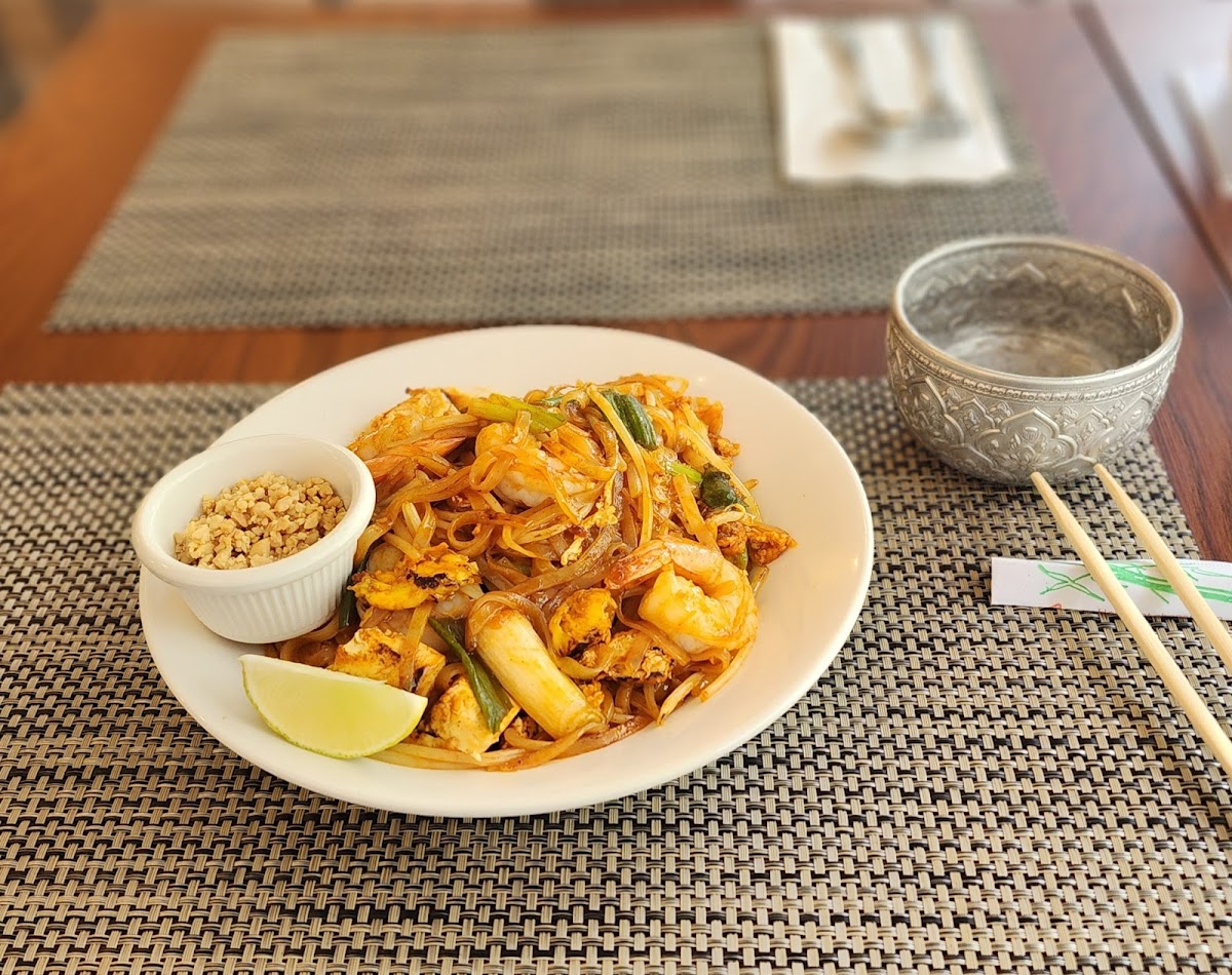 For those who enjoy a hearty meal, the Chicken Fried Rice and Pad Thai Noodles are both crowd-pleasers. The Chicken Fried Rice is packed with flavor and features tender chicken, vegetables, and a well-seasoned rice base, making it a filling choice for any Thai lover. On the other hand, the Pad Thai Noodles, made with stir-fried rice noodles, egg, tofu, and a mix of vegetables, are a perfect balance of tangy, sweet, and savory flavors. If you prefer a more traditional option, the Chicken Pad Thai is just as satisfying, with its signature tamarind-based sauce that offers a comforting yet bold taste.
